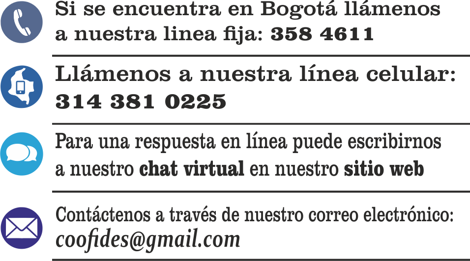 Queremos que se ponga en contacto con nosotros para compartir sus comentarios, opiniones y necesidades o para recibir una asesoría completa sobre un producto o servicio de su interés. Según la información que necesite, puede hacerlo mediante las siguientes opciones: